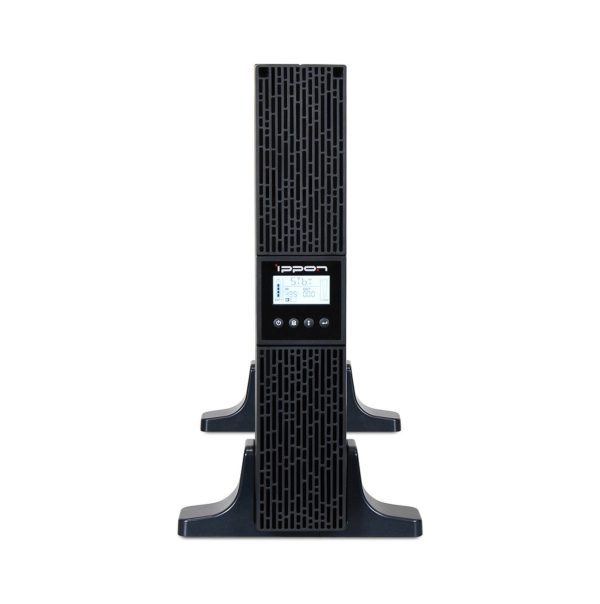 Корпус бесперебойника выполнен из металла, его можно установить горизонтально, вертикально с помощью подставки или встроить в 19” стойку, занимая в ней 2 посадочных места (2U), направляющие для установки в стойку приобретаются отдельно.