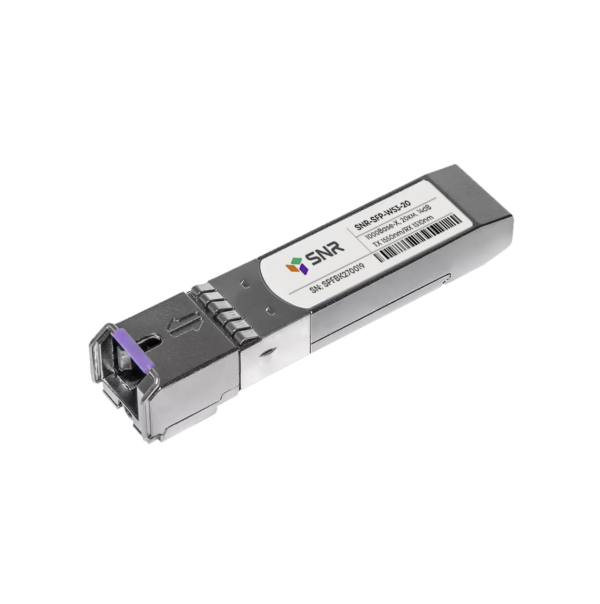 SNR-SFP-W53-20 модуль SFP WDM дальность до 20км (14dB) 1550нм одноволоконный оптический модуль с форм фактором SFP для 1G Ethernet, соответсвует стандарту 1000Base-BX. Предназначен для работы в одномодовом оптическом волокне (Single mode fiber, SMF), максимальная дальность 20 км, оптический бюджет 14dB, SC коннектор, рабочая длина волны Tx/Rx: 1550/1310нм. Поддержка функции DDM